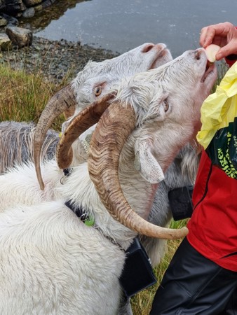 Det blir et spennende prosjekt å følge geitene frem til neste vår. Vi vurderer å kjøpe egne geiter, så da blir dette en fin trening i å bli vant med geiter. Vi må finne ut hva de spiser, vi må oppsøke de i marka sånn at de forblir tamme. Vi må holde skjenefloren rein og barna får være med å gi de høy og kraftfor til vinteren.